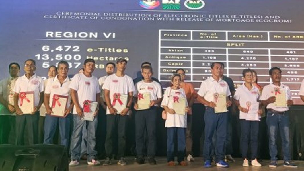 On Monday, DAR turned over 6,472 electronic titles under the Support to Parcelization of Lands for Individual Titling Project to 5,837 ARBs from Western Visayas, and 1,803 CoCRoM to 1,762 farmer-beneficiaries from Guimaras. (PNA)