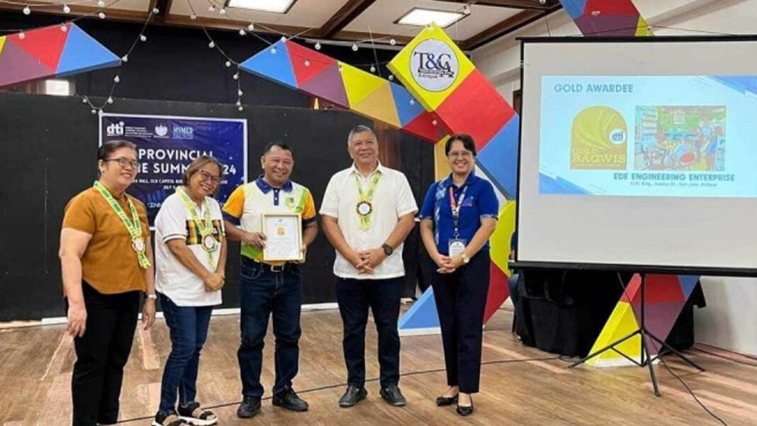 The DTI conferred the Gold Bagwis Award for 2023 to engineer Edwin Eraga (EDE) Appliance Center and Services at the opening of the Micro, Small and Medium Enterprises (MSME) Week on Tuesday.