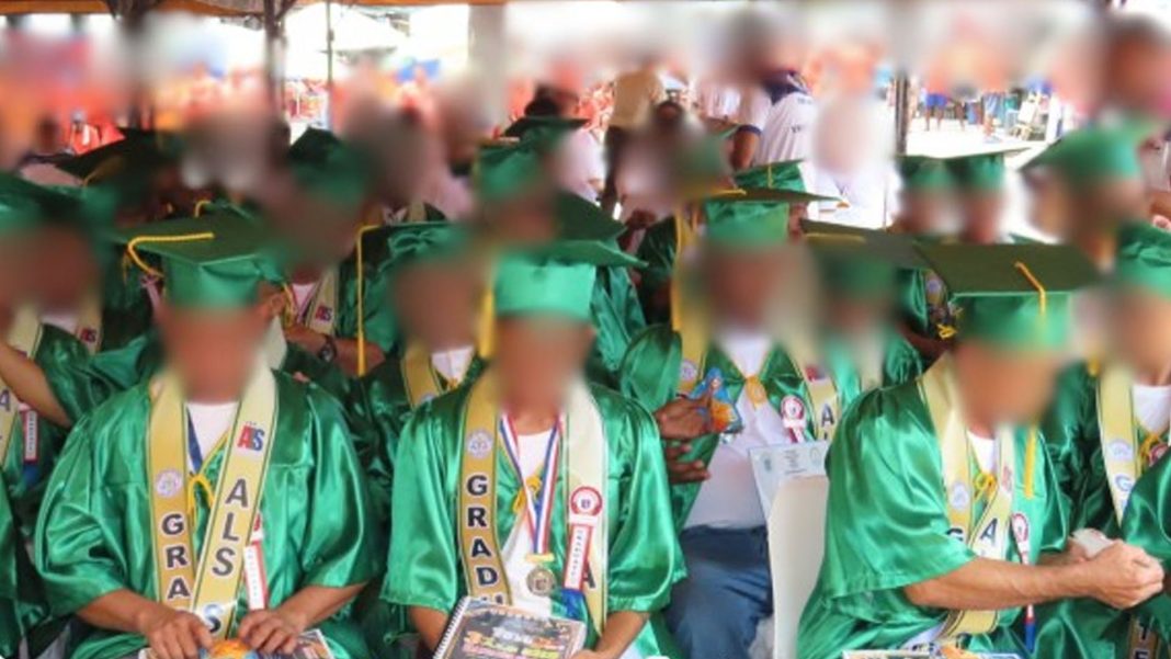 The ceremony, organized by the prison’s Education and Training Section in partnership with Cagbolo Senior High School, took place at the Maximum Security Camp with the theme, “Filipino Graduates: Prepared to Lead with Competence and Character.”