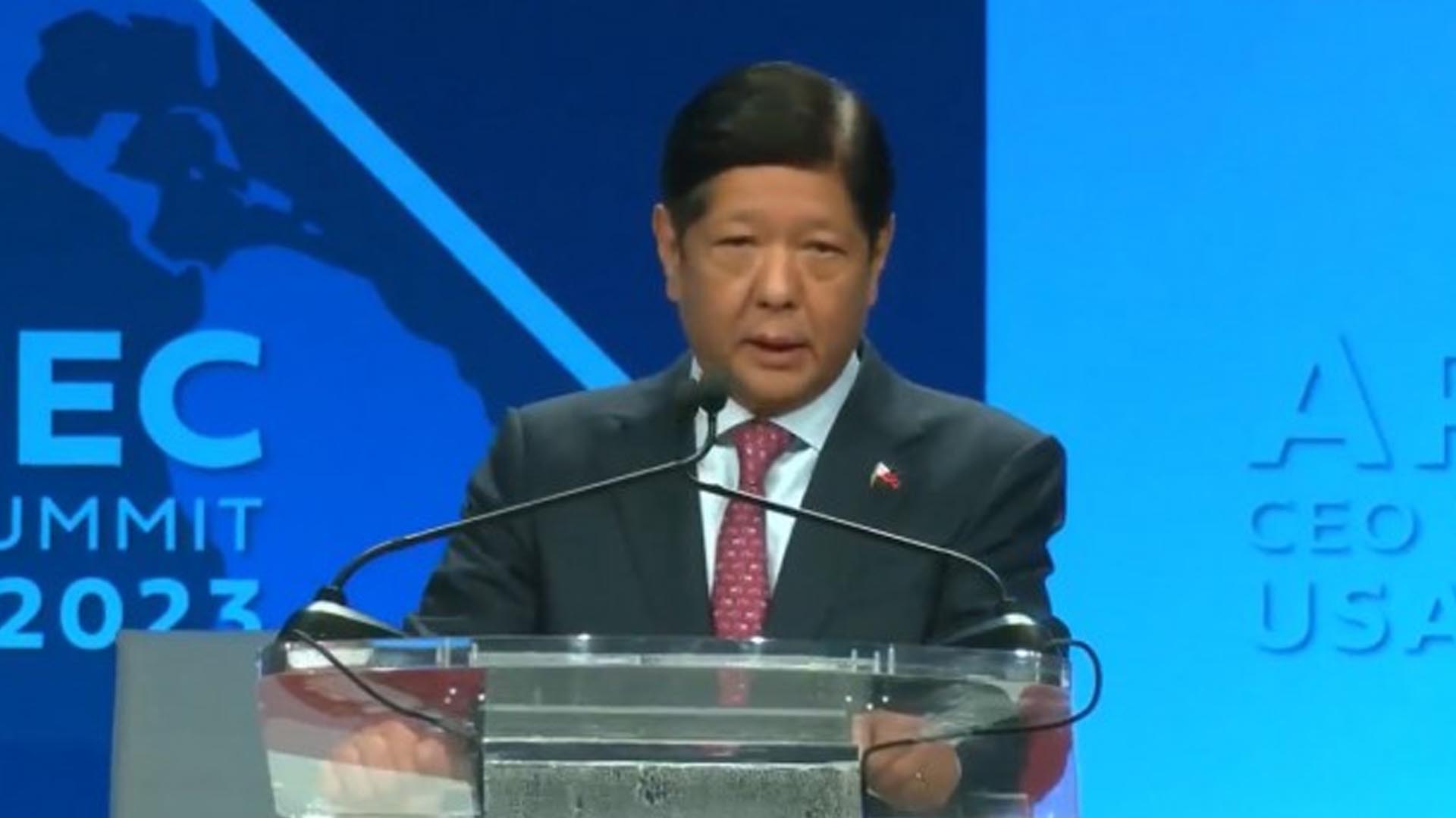 During the opening of the APEC CEO Summit at the George Moscone Convention Center in San Francisco, California, Marcos said the economic model and international trading system that heightened economic growth in the Asia-Pacific region “are now getting undermined by criticisms due to apparent and exacerbating gaps.”