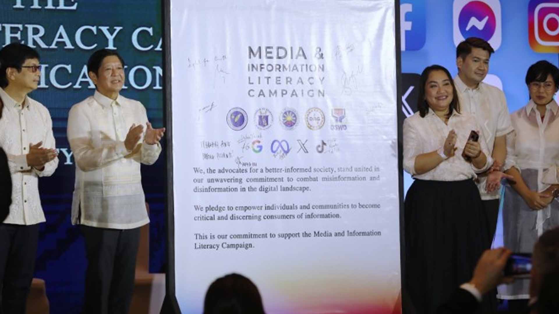 Marcos led the signing Monday of a memorandum of undertaking (MOU) on its Media and Information Literacy (MIL) campaign with Presidential Communications Office (PCO) Secretary Cheloy Velicaria-Garafil, officials of other government agencies and representatives of major social media platforms.