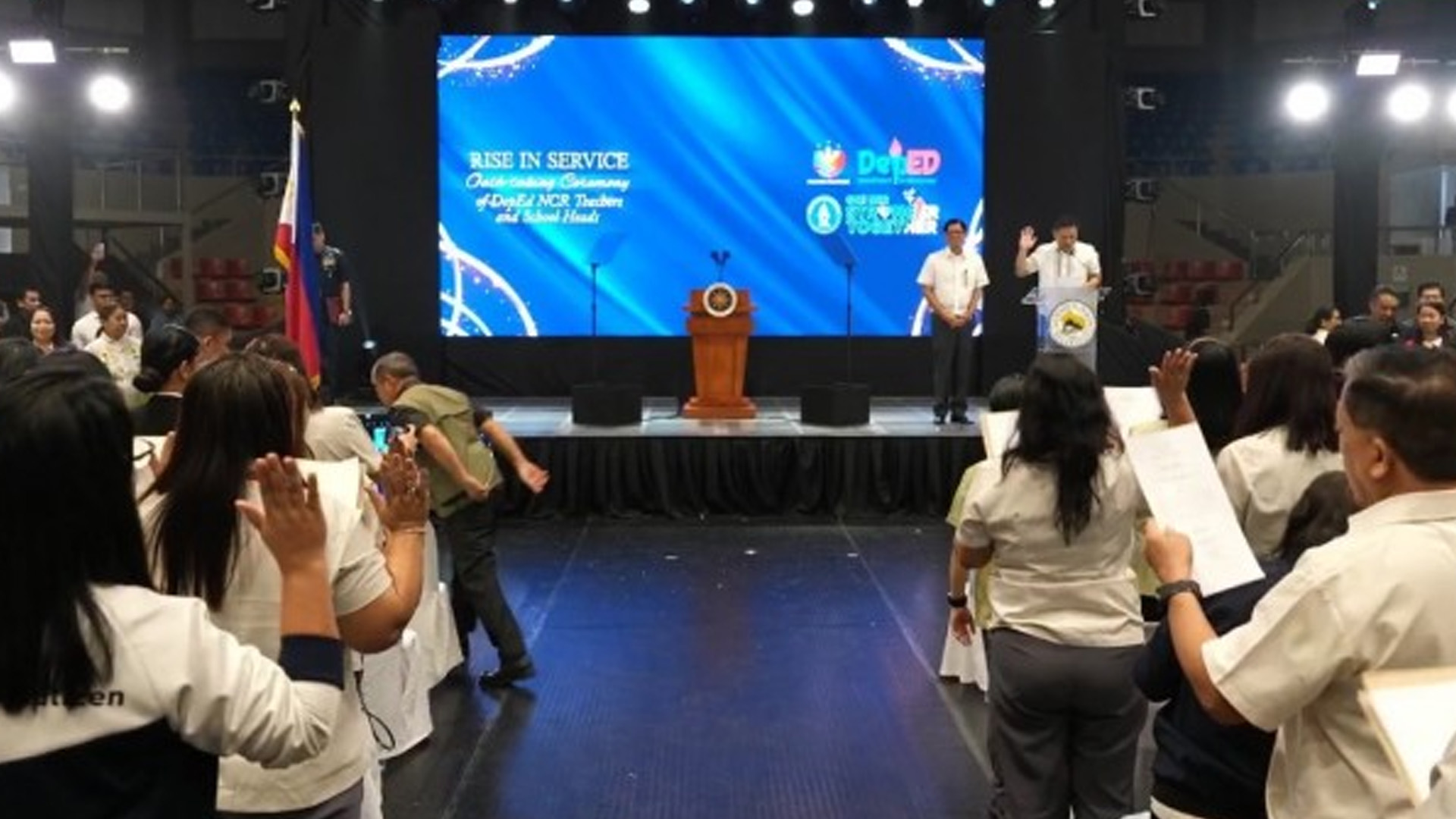Guided by the Department of Education’s (DepEd) core principle of RISE (Resilience, Integrity, Service and Excellence), a total of 2,915 promoted teachers and school heads took their oath before Education Secretary Sonny Angara.