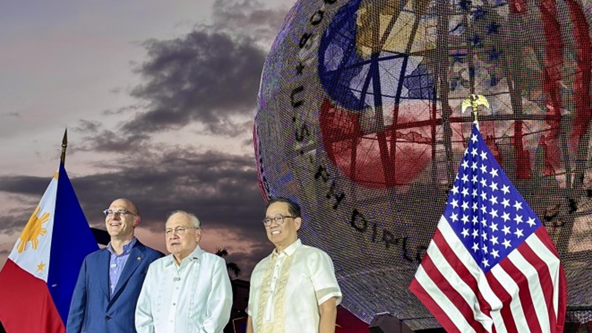 The logo, officially introduced at the iconic SM Mall of Asia Globe, features the flag elements of both countries, including the Philippine eight-rayed sun and the American stars and stripes.